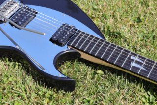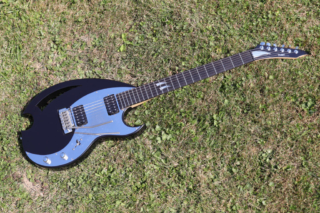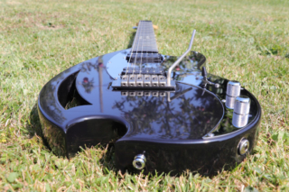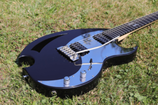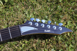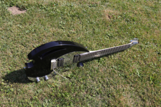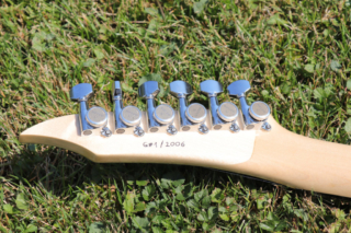 Meine erste E-Gitarre. Das Design ist letztendlich nicht 100% gelungen. Ich bin auch mit der Gitarre nicht ganz warm geworden. Als sich dann noch die Stehbolzen für das Tremolo gelockert haben, weil das umgebende Holz nachgegeben hat, habe ich sie zerlegt und die Teile sind lang am Dachboden herumgelegen. Die ursprügnlichen Tonabnehmer (Seymour Duncan) sind in eine andere Gitarre gewandert, die ursprünglich verwendeten Schaller Top Locking Mechaniken habe ich verkauft. Im Frühjahr 2019 habe ich die Teile dann wieder gefunden, und beschlossen, die Gitarre zu restaurieren.