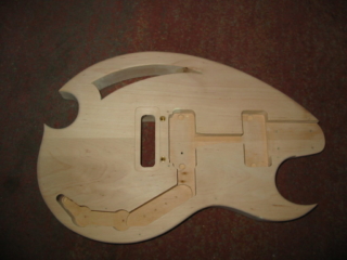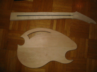 Nach Erfolgreicher Premiere mit dem Bass habe ich mich im Jahr darauf mit einem eigenen Entwurf ins Reich der E-Gitarre vorgewagt.